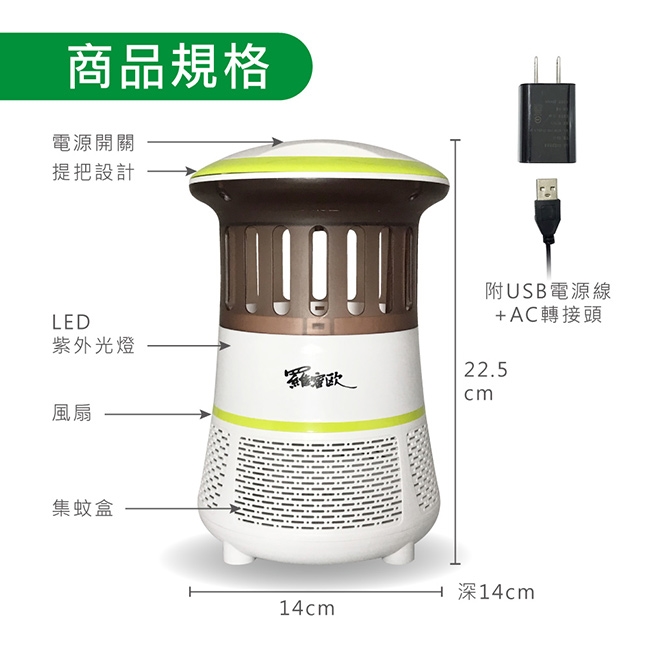 高效風扇 物理滅蚊 USB插頭 內附AC轉接頭 UV紫光發出誘蚊 8顆LED節能燈 環保省電 可拆式集蚊盒 清理方便 使用電源 AC100 240V 50 60Hz轉換為DC5V 1A 插頭 售價:598