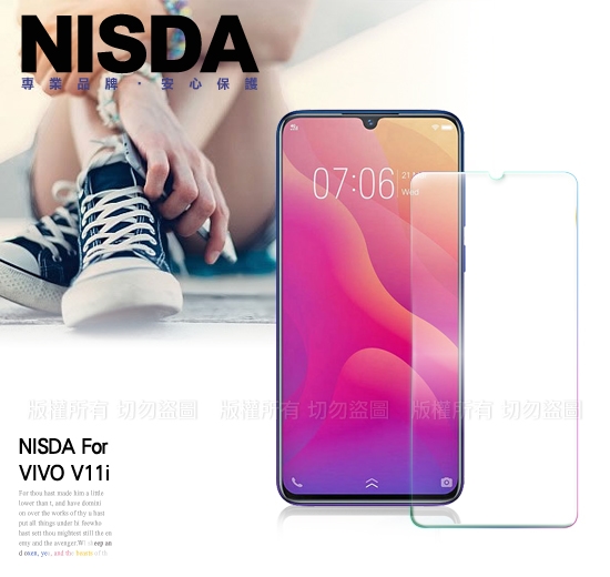 NISDA for ViVO V11i 鋼化 9H 0.33mm玻璃螢幕貼-非滿版 表面頂級9H硬化抗刮耐磨處理,有效防止螢幕刮傷,使螢幕保護貼更加的耐用 特別以類荷葉抗油汙表面處理,減低指紋附著,讓您輕易擦拭油質、髒汙。
