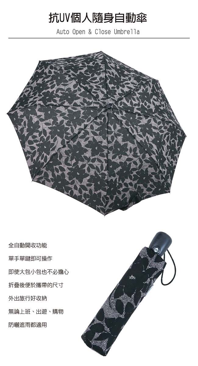 單鍵自動開收 經典熱銷款 一年原廠零件保固 玻璃纖維傘骨 軟Q防風彈性佳 品牌 RAINSTORY顏色 灰色系 紫色系風格元素 花草蔬果傘布主材質 100 Polyester傘布材質說明 鐵 售價:623